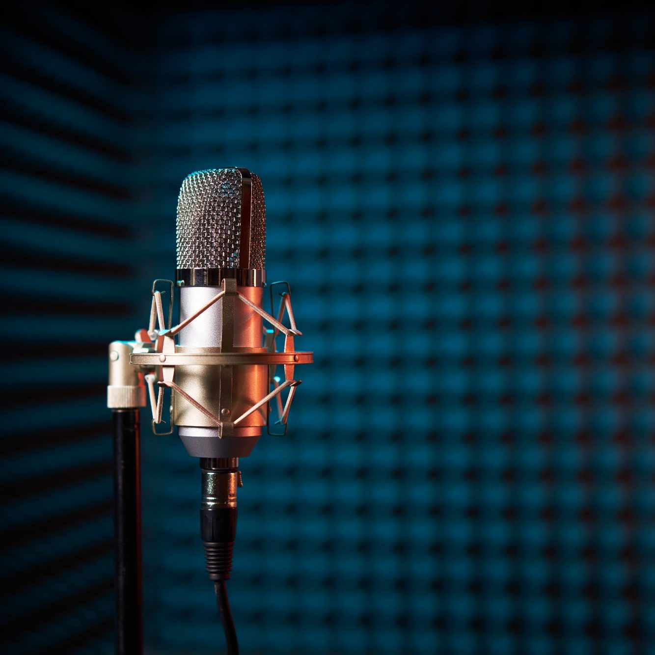 Broadcast-rated microphones and a sound-treated recording environment